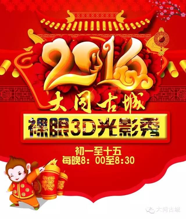 大同古城2016春節上演3D裸眼燈光秀 宏微全程提供微信紅包技術(shù)支持