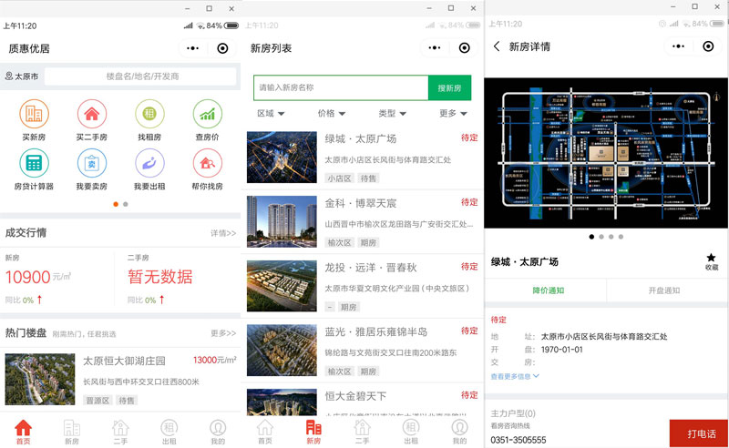 新優(yōu)居的智能化體現在方方面面,不同設備來(lái)訪(fǎng)問(wèn)網(wǎng)站前臺時(shí),自動(dòng)顯示與之最相適應的界面。并將房產(chǎn)數據以電腦端+手機端+微信端+小程序+APP(開(kāi)發(fā)中)的不同形式